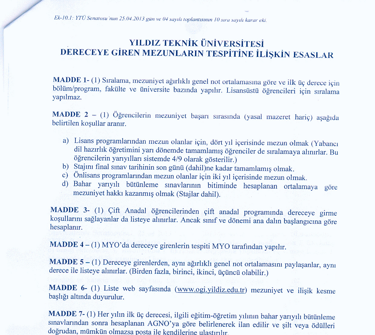 Dereceye Giren Mezunların Tespitine İlişkin Esaslar