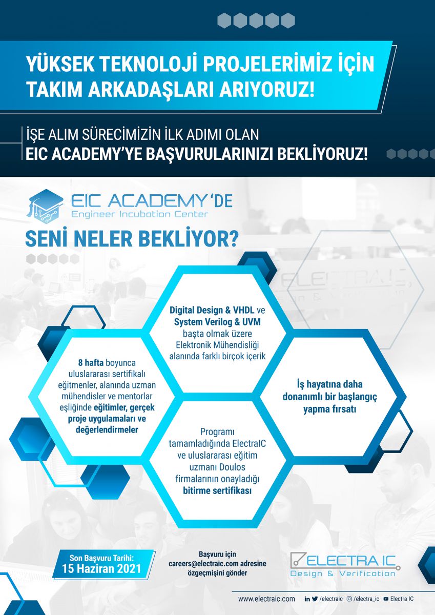 Electra IC firması tarafından oluşturulan EIC Akademi isimli programın tanıtımının yapılmasına ilişkin 01.06.2021 Tarihinde saat 18:00'de firma tarafından bilgilendirme etkinliği gerçekleştirilecektir.