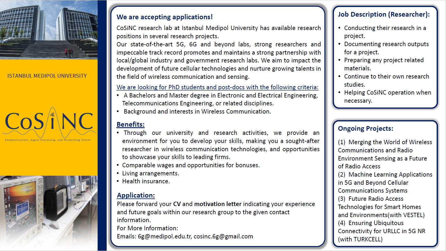 Communications, Signal Processing, and Networking Center (CoSiNC) Araştırmacı Başvuruları Hakkında